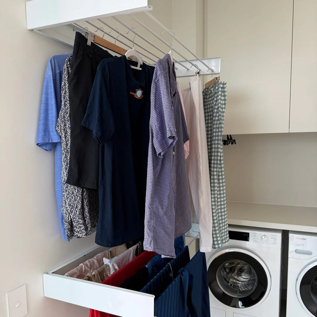 Our rack is designed to support up to 30kg of wet or dry clothes, making it perfect for everyday laundry like shirts, jeans, towels, and delicates.